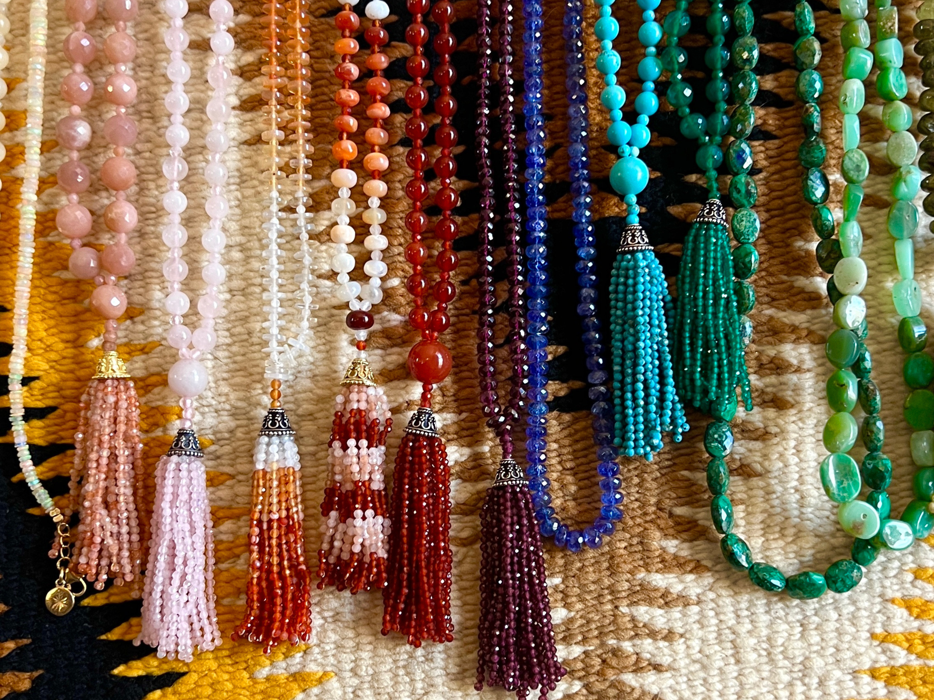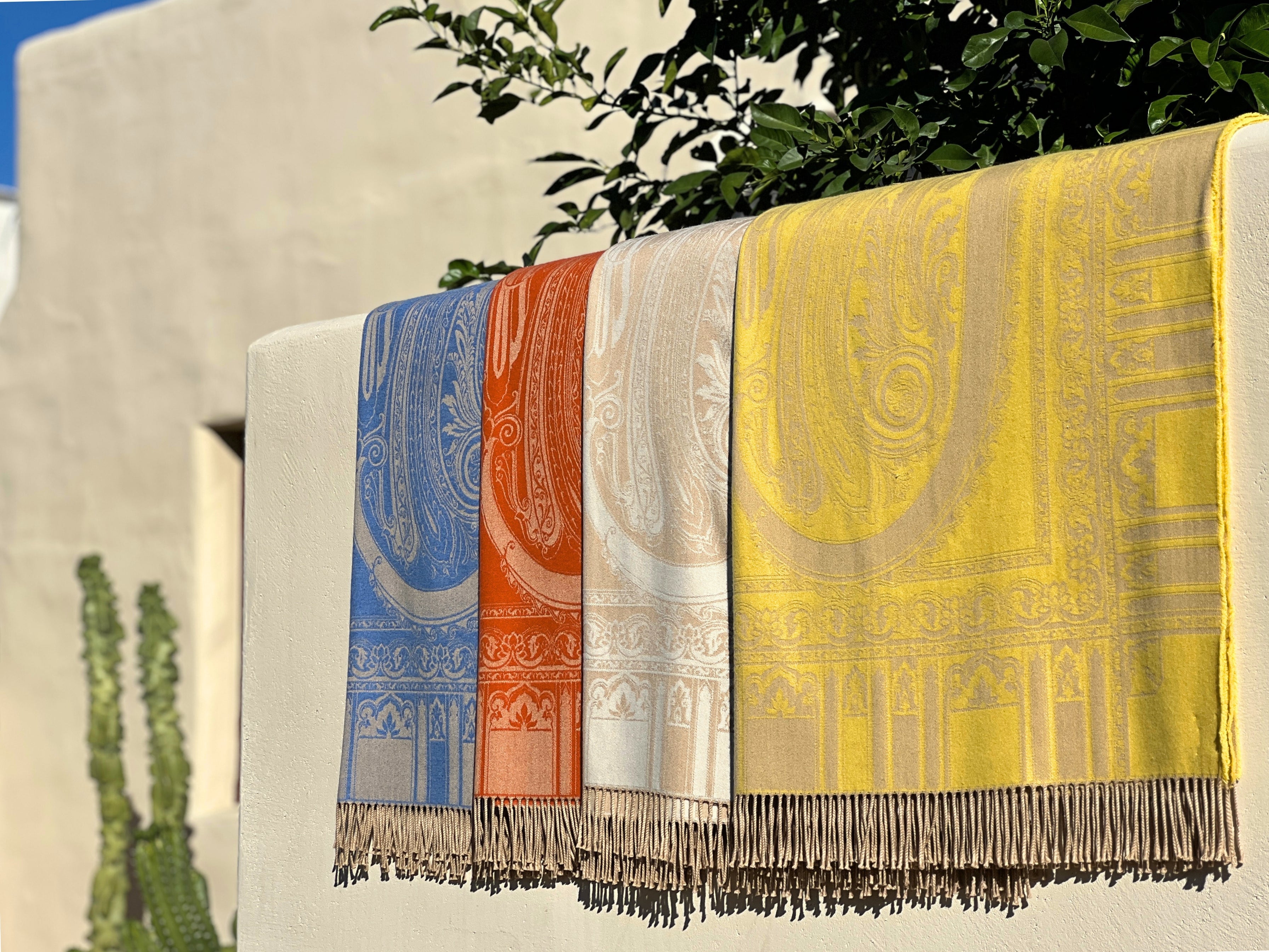 "Have looked at the Nizhoni maxi for at least 2 years and finally purchased recently. It is gorgeous of course but, such a creative combination of colors. Love wearing it and paired with Pax Philomena Native American jewelry it's a showstopper. Can wear year round. Just throw on a pax boiled wool coat or kantha coat! Jean Marie Clarke is a genius when it comes to fashion" -Gayle, September 2024