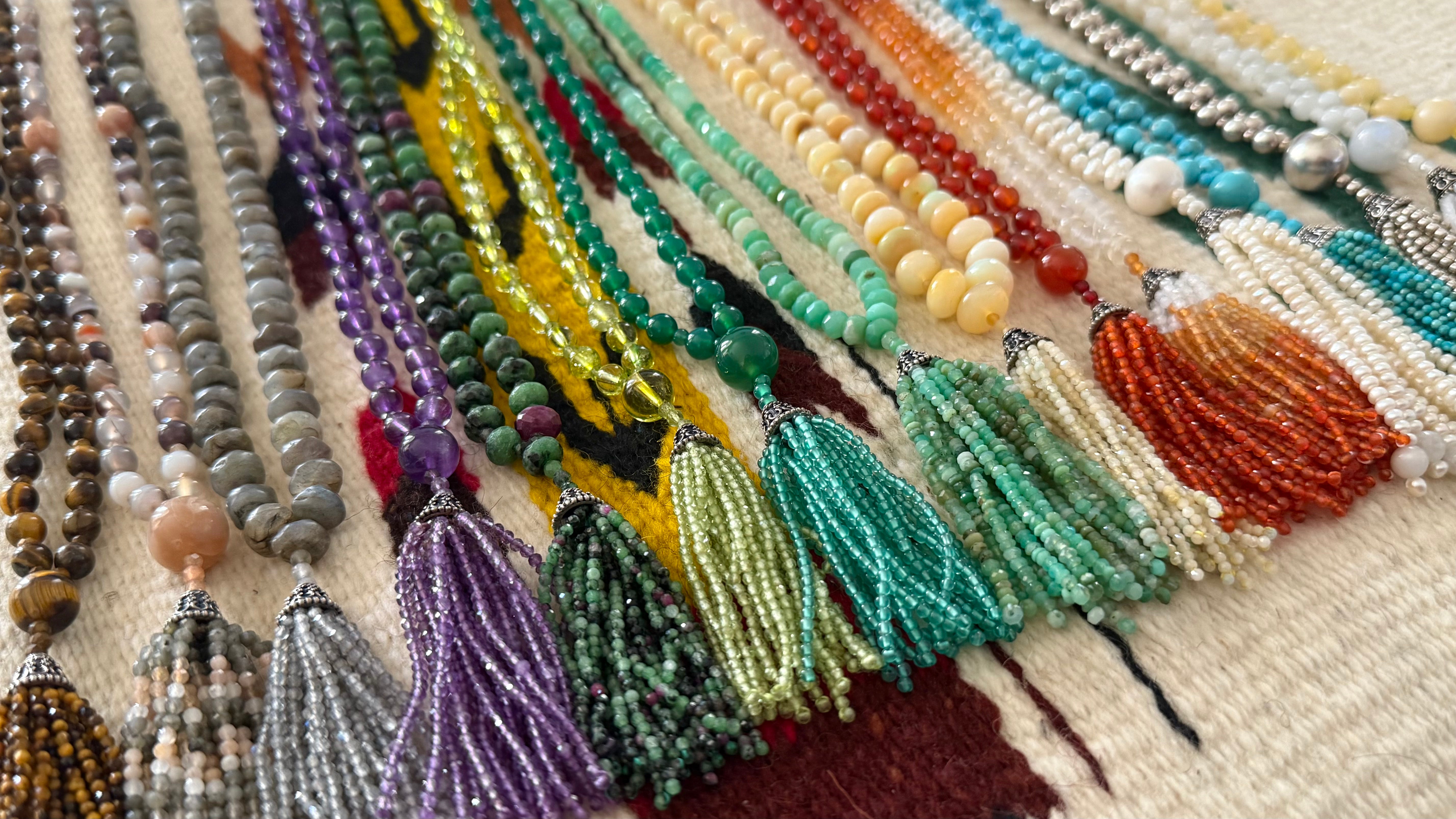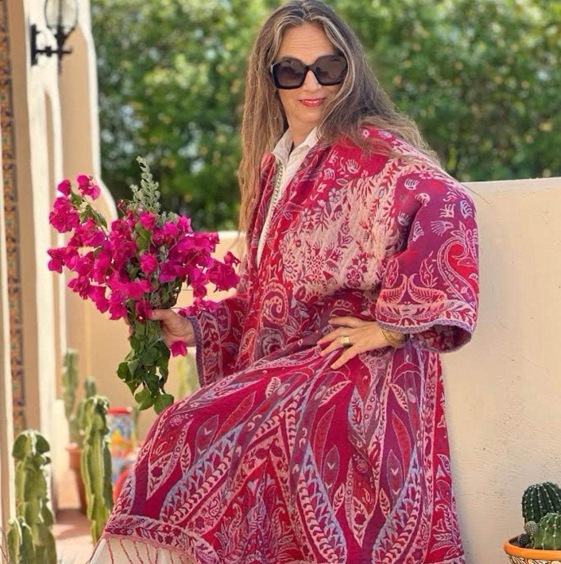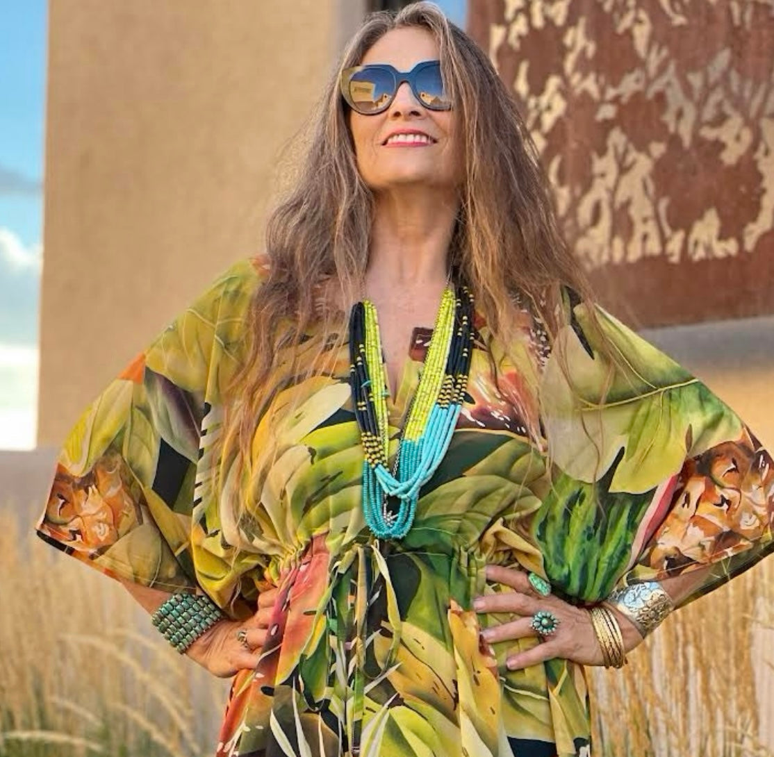 "Have looked at the Nizhoni maxi for at least 2 years and finally purchased recently. It is gorgeous of course but, such a creative combination of colors. Love wearing it and paired with Pax Philomena Native American jewelry it's a showstopper. Can wear year round. Just throw on a pax boiled wool coat or kantha coat! Jean Marie Clarke is a genius when it comes to fashion" -Gayle, September 2024